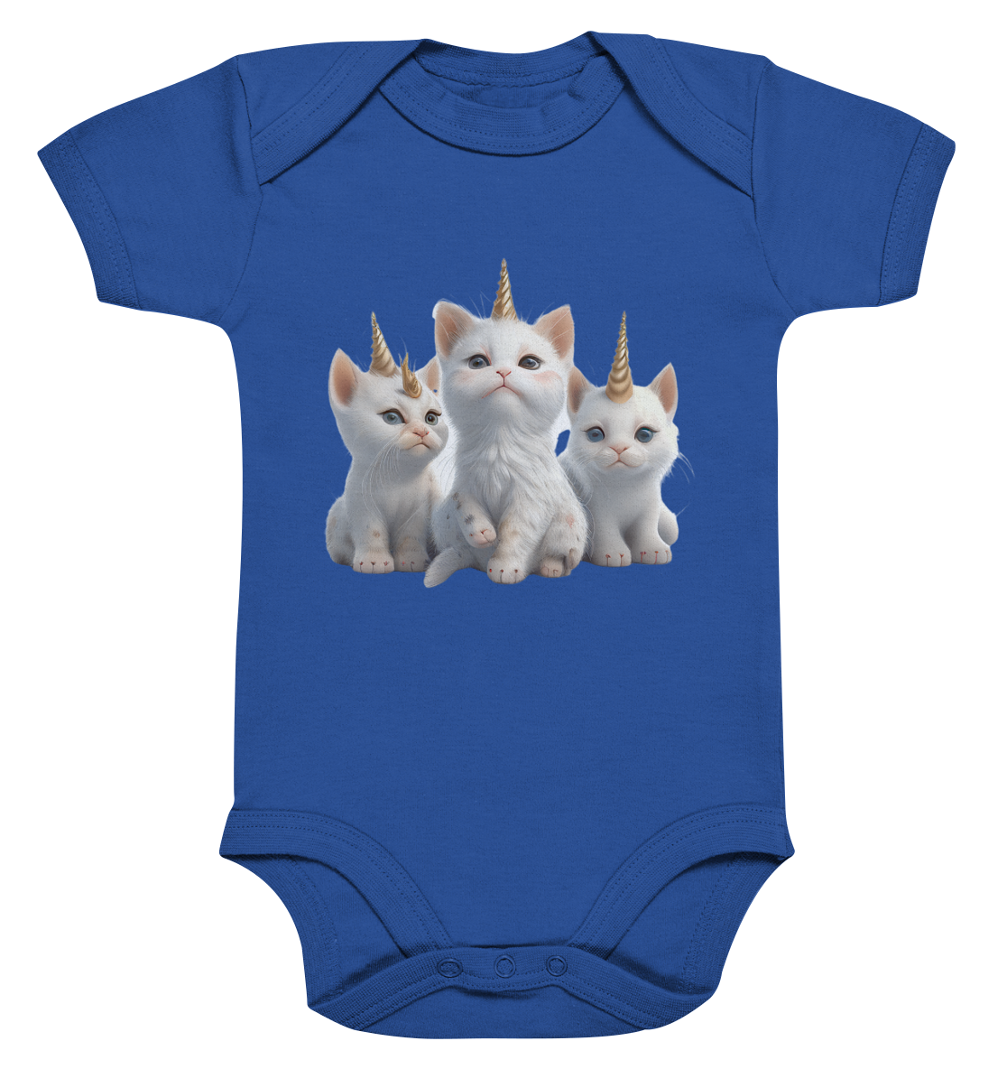Dieses Body ist der Inbegriff von Niedlichkeit! Drei kleine Baby-Einhorn-Katzen zieren die Vorderseite und zaubern jedem Kind ein Lächeln ins Gesicht.Â