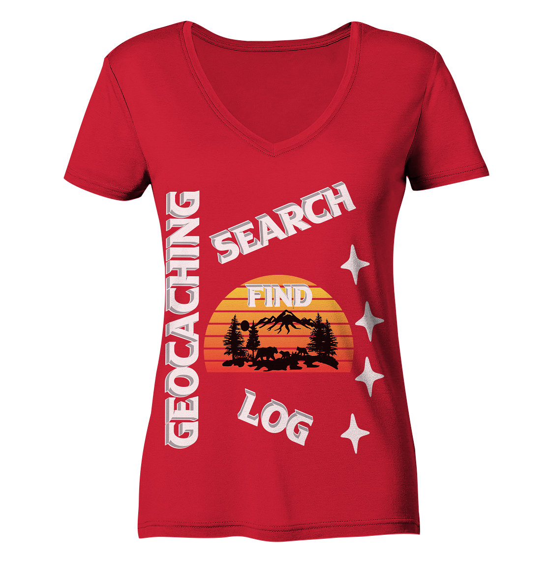 Geocaching-SEARCH-FIND-LOG, Cache Helles Design, Mounten - Ladies Organic V-Neck Shirt