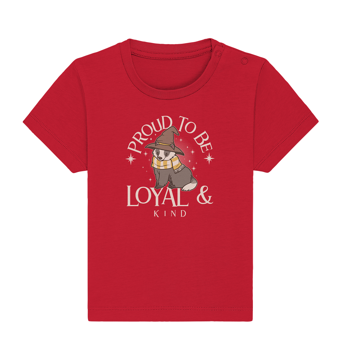 "Proud to be loyal and kind" mit einem süßen Cartoon-Waschbär ist ein cooler Aufdruck für Streetwear und Casual Style.