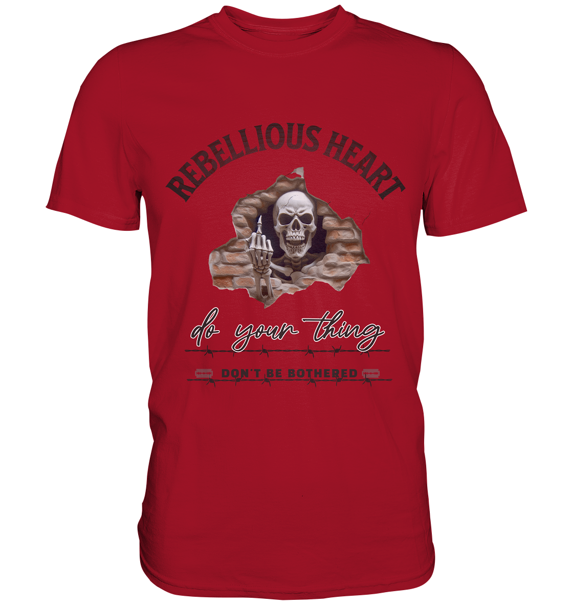 Entdecke das "Rebellious Heart" Design in unserer Streetwear-Kollektion. Mit diesem auffälligen Print und einem frechen Totenkopf-Bild zeigst du deinen wahren Charakter und stellst deine Individualität in den Vordergrund. Ob auf einem Shirt oder Hoodie – setze ein Statement und sei ganz du selbst: Be Your Thing.